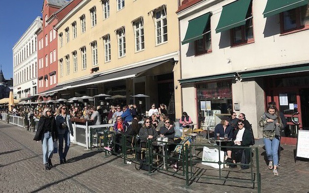 Sinh hoạt của người dân vẫn thường nhật trên đường phố ở Malmo, Thụy Điển, trong mùa dịch Covid-19. Ảnh: Gary Moore.
